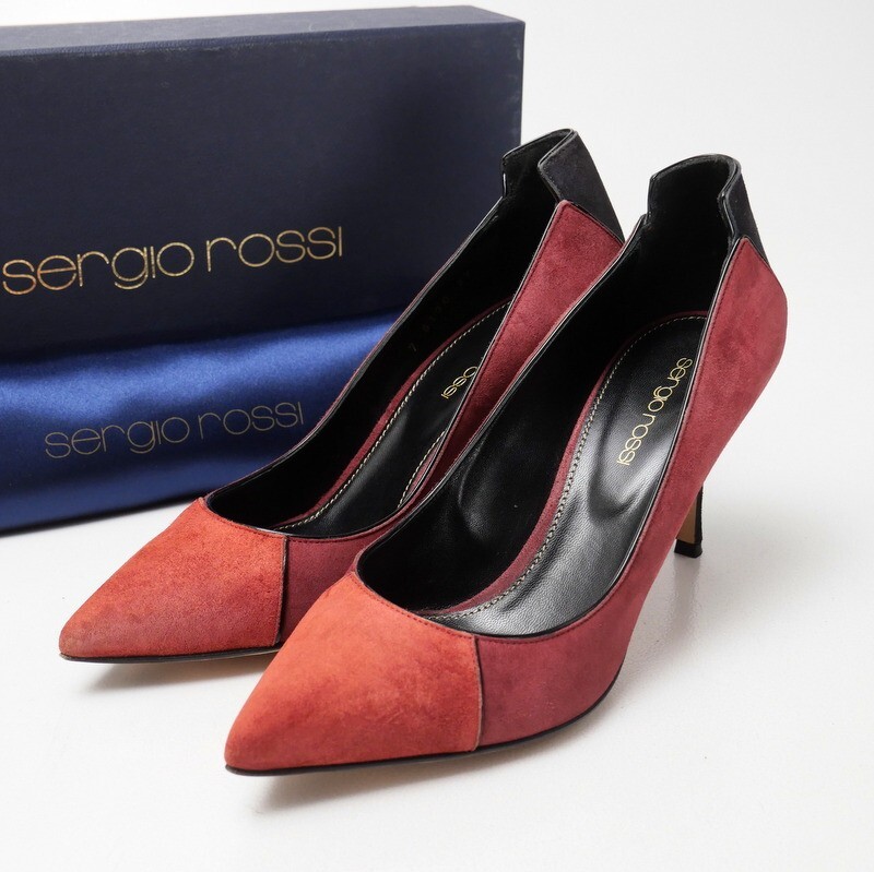 | GS5683*イタリア製 sergio rossi セルジオロッシ Size 37 スエードレザー 配色 ポインテッドトゥパンプス 靴 ボルドー系 | |||