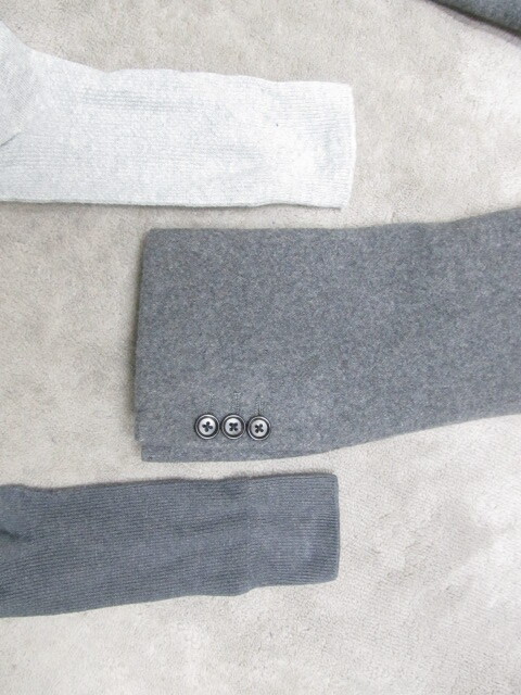 自分と同じようにグレーの色合いに拘る人用に、ユニクロ靴下のライトグレーとダークグレーを一緒に写しました。