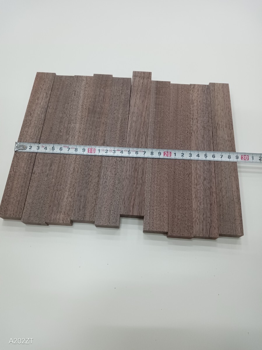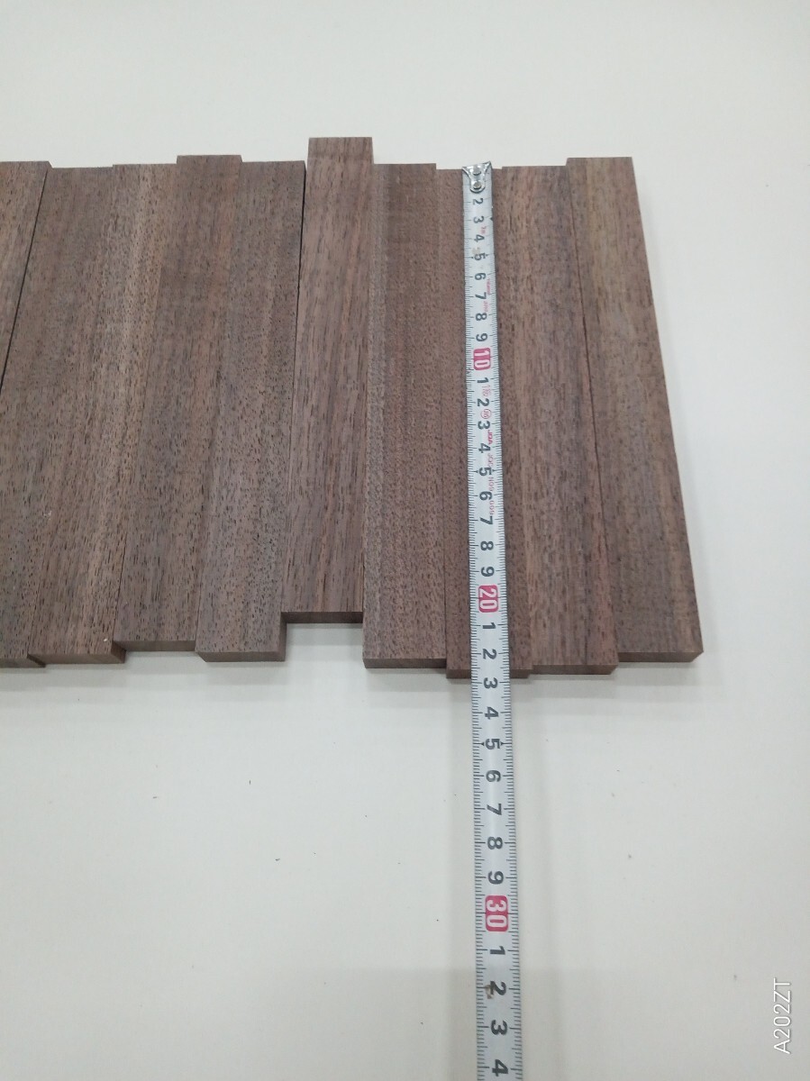 家具製作時に出たウォールナット無垢材の端材です。サイズは写真での確認お願い致します。4面自動カンナで仕上げてます。多少の逆目、ささくれ等はございます。端材の為マジックの墨が残っている箇所があります。また天然木の為、反り、節、割れ等ある場合があります。DIYなどの材料にいかがでしょうか。宜しくお願い致します。