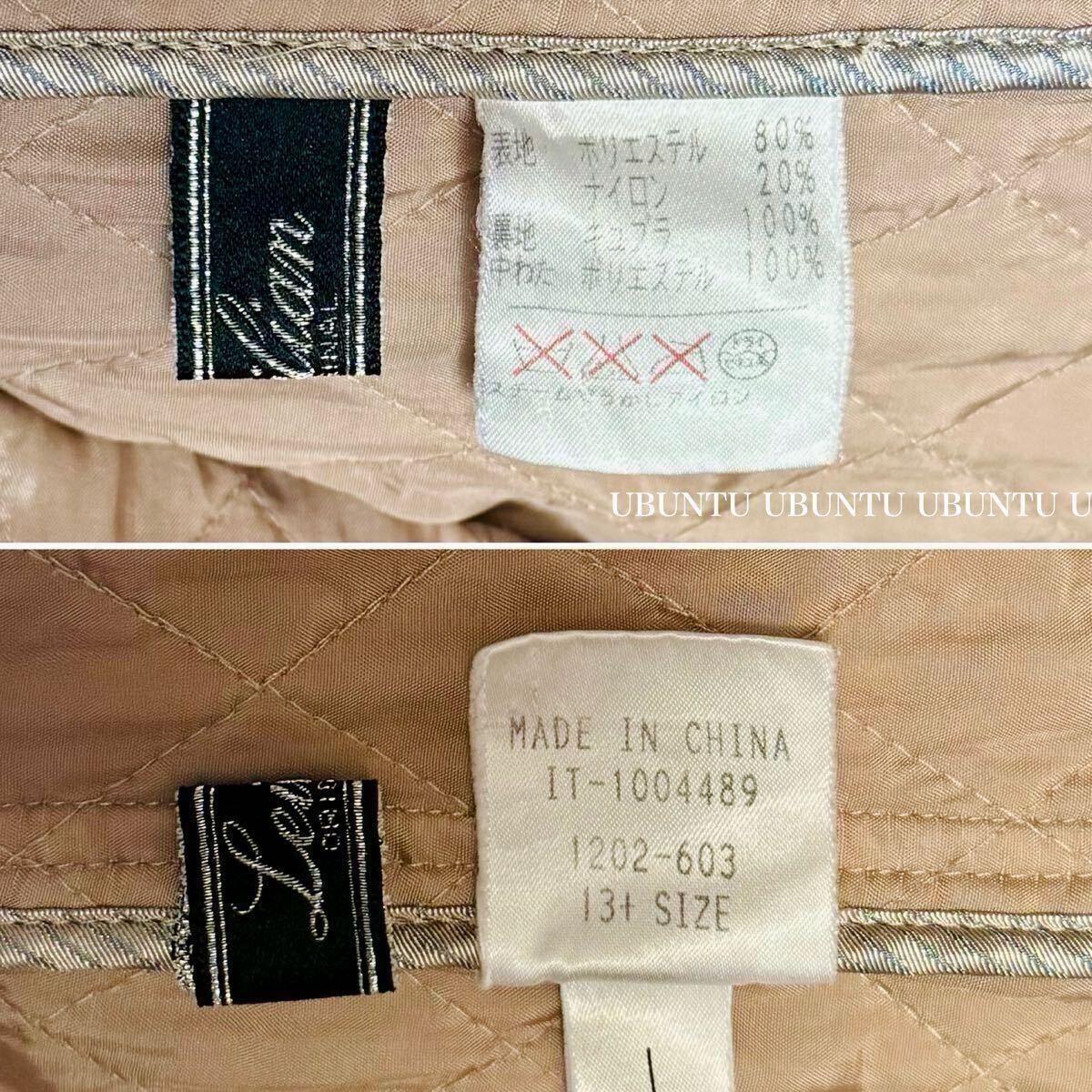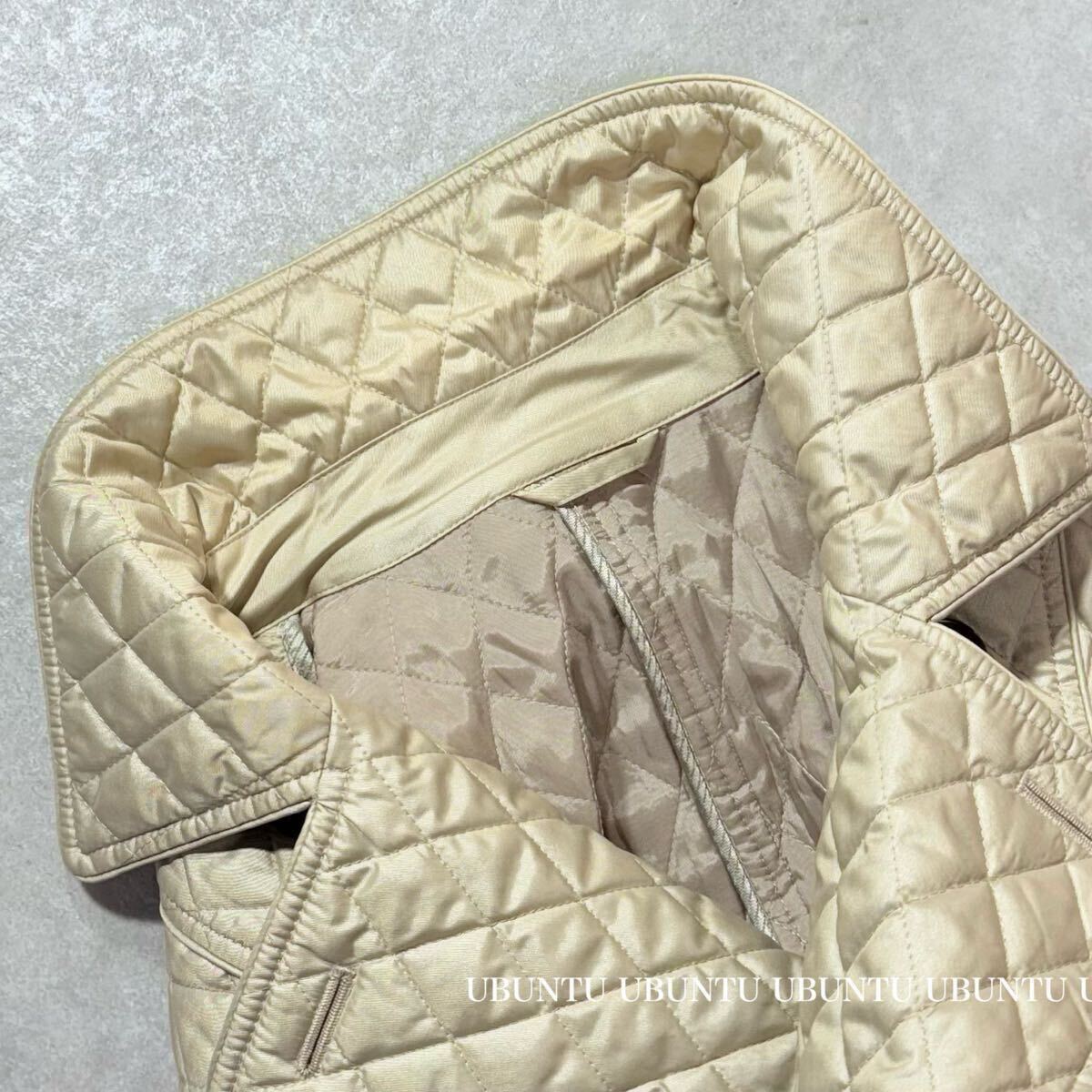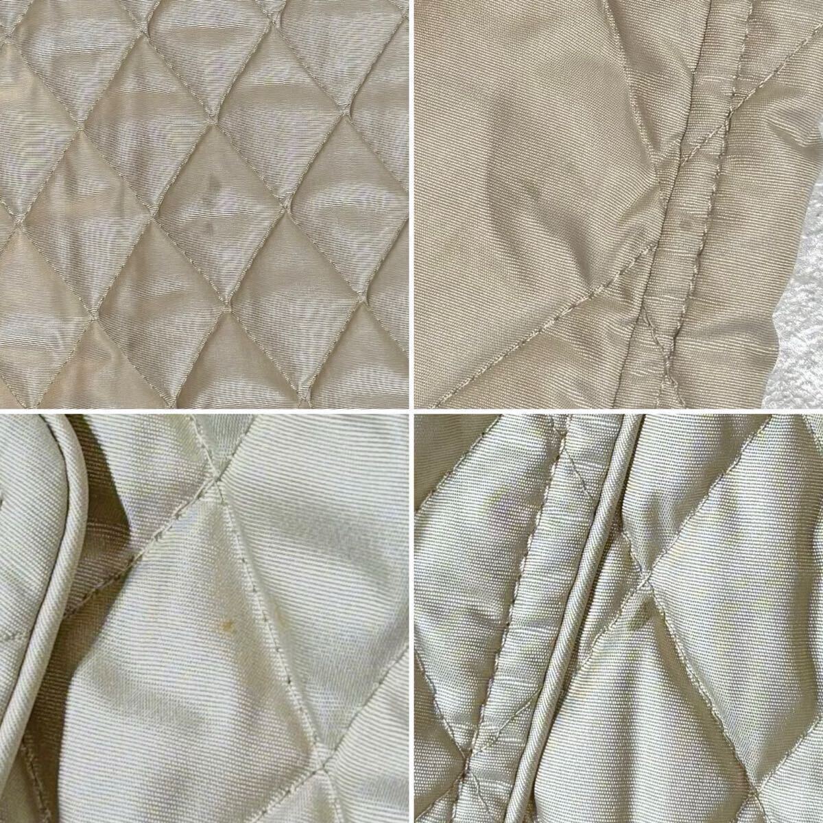 目立たない程度のシミが、右ポケット付近、左胸元、左裾辺り、背面にございますが、着用時にはキルティングの凹凸や生地の艶感に紛れて殆ど気にならない程度です。