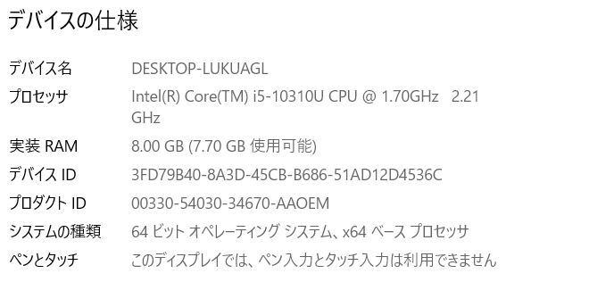 | 商品説明 | ■商品概要 ・2020年に発売された頑丈・軽量・ロングバッテリーな12.1型モバイルノートパソコンで、第10世代のクアッドコアIntel Core i5のCPU(10310U)・8GBメモリにNvme 256GBのストレージを搭載しています。 ・正規リカバリによるセットアップ(リカバリ領域あり)を行い、OS は Windows 10 Proffesional で発送します。 ・本機種はWindows11 公式対応機種となります。 アップグレードより簡単にアップグレード可能です。 ・本機種はLTEモデルとなります。 ■本機種の主な特徴について SV8の順当進化の機種となっており、基本性能の向上が図られています。 【Nvme SSD GEN4対応】 Nvme SSD搭載可能。 こちら、GEN4に対応しているためより高速なNvmeSSDの搭載が可能です。 PCの起動は非常に早く、待つというストレスもなく非常に快適です。 【顔認証について】 顔認証の設定はややわかりにくいものの、設定をしてから使用するとこちらも1秒かからないくらいの速さでログインが完了します。頻繁に離籍したり手がふさがっていることが多い方は、よりメリットを感じられるかと思います。 【USBポートについて】 USBポートが本体左側にも付いたため、PCに接続する機器の自由度が増したことも大きなメリットだと思います。 もちろん、Type Cポートも搭載しているため、I PhoneやAndroidといった各種スマホの充電やデータのやり取りなど、スキがなく使いやすいモデルです。 ■主なスペック メーカー名 : Panasonic 製品名(型番) : CF-SV9RFLVS CPU : Core i5-10310U 1.70-4.40 GHz (4コア/8スレッド) メモリ : 8GB ストレージ(SSD) : M.2 Nvme 256GB (リカバリー領域有り) 光学ドライブ :なし 画面サイズ : WUXGA TFTカラー液晶 12.1型ワイド 解像度:1920×1200ドット (FULL HD) 有線LAN/無線LAN : 1000BASE-T/100BASE-TX/10BASE-T / インテルR Wi-Fi 6 AX201 IEEE802.11a ( W52/W53/W56)/b/g/n/ac/ax準拠( WPA3、WPA2-AES/TKIP対応、Wi-Fi準拠) キーボード : 日本語配列 インターフェイス:USB3.1 Type-Cポート×1、USB3.0ポート×3、LANコネクター(RJ-45)、外部ディスプレイコネクター(アナログRGB ミニD-sub 15ピン)、HDMI出力端子(4K60p出力対応) OSシステム : Windows 10 Pro 64bit その他:nanoSIM挿入口 ■付属品 ACアダプター ■導入済みソフト -デフォルトソフトウェア- ・Panasonic 各種ユーティリティ(リカバリディスク作成ソフト・各種設定ソフト) ・Microsoft Office on the web (Word,Excell,Powerpointの無料 Web版) -追加導入ソフトウェア ・LibreOffice (オフラインで使用可能なOffice ソフトウェアセット) ・Google Chrome(世界シェア約 50 %のブラウザソフト) 個々によって使用用途が異なるため、汎用的かつ必要と思われるソフトを優先して導入させていただきました。 ■商品の状態について 総合評価:使用時間20時間の新古品です。 保管に伴う薄傷はありますが、新品に近い状態の新古品です。 トップカバー:保管に伴う薄傷はありますが、質感もよくキレイです。 ボトムカバー:非常にキレイです。 キーボード:新品同様に非常にキレイです。 パームレスト:質感もよく、非常にキレイです。 液晶:目立った傷もなく、発色はキレイです。 側面:非常にキレイな状態です。 その他:WEBカメラ表示確認、ネット接続確認済みです。 その他注意事項:SSDにつきましては、企業のセキュリティの関係でSSDのみ破棄され本体のみを入荷している場合がございます。 そのため、記載されている使用時間につきましては本体のみの使用時間となり、SSDの使用時間と相違がある場合がございますのでご了承ください。 ■■落札後のサービスについて(決済時に併せてご依頼下さい)■■ 【OSの変更について】 ご希望の方には、Windows 11 への変更を無料で行います。 お届けする際に搭載されているOSは『Windows 10』 ですが、ご希望の方には『Windows 11』にOSを変更の上、発送をさせていただきます。 【領収書について】 発行可能です。 ご希望の場合には、取引メッセージにて『宛名』、ご指定があれば『品名』等、決済後にご連絡ください。 ※決済頂いた後速やかに梱包作業を行うため、OS変更、領収書ご希望の方は、決済時のあと、直ぐにご連絡いただければ幸いです。 ――――――――――――― 【オプション内容】 Nvme 512GB=10,000円 Nvme 1TB=15,000円 大容量をご希望の方は、正規リカバリによるリカバリーもついておりますので、ぜひ併せてご検討ください。 (ご希望の方は、落札完了後 入金される前に取引メッセージにてご連絡いただければと思います。) | |