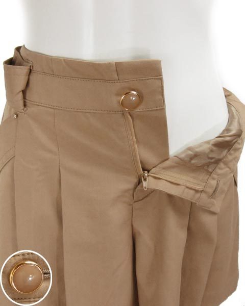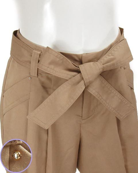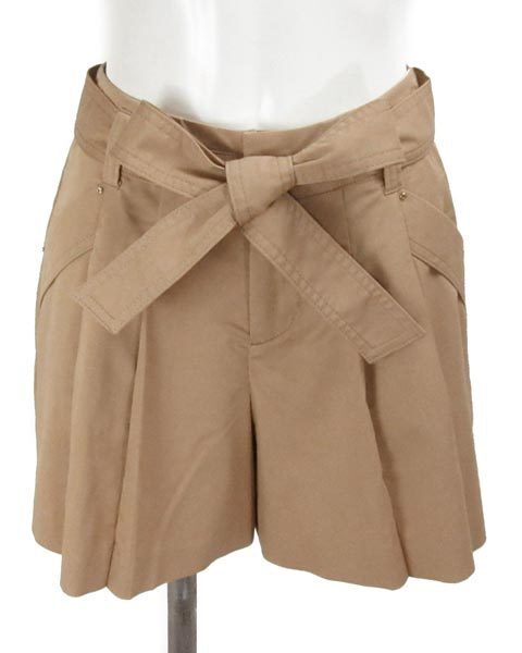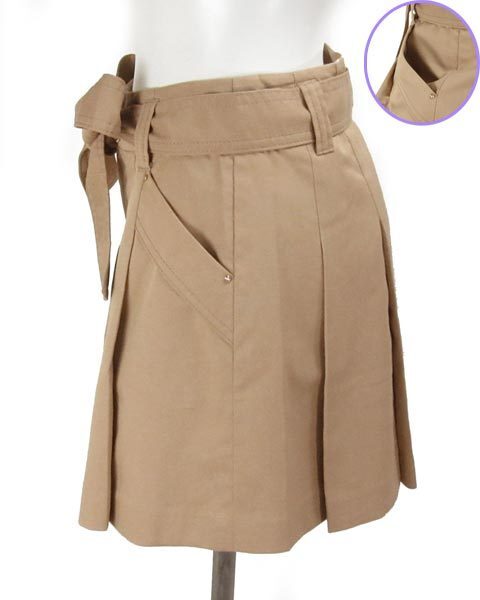 | プリーツの入ったフェミニンなショート丈のスカートパンツ。リボンベルトが甘目コーディネートで活躍してくれます。Tシャツスタイルからニットやブラウスなど幅広くコーディネートして頂けます。コーディネートしやすいキャメルベージュ。 |