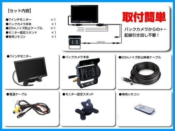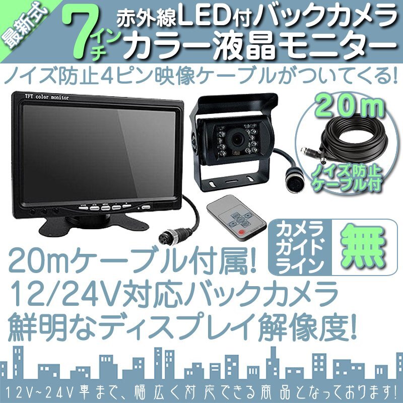 | ■24V車対応の液晶モニター + バックカメラセット 液晶モニターとバックカメラのセットなので、こちらのセットだけでバックカメラをご利用出来ます。 ■7インチオンダッシュ液晶モニター 7インチTFT液晶なので、バックカメラ用としては、満足出来る大きさです。 また、オンダッシュタイプのため、取り付け場所を選ぶことが出来ます。 ■赤外線LED搭載バックカメラ 赤外線LED搭載モデルのため、視認性が低下し易い夜間でも一定の視認性を確保出来ます。 また、広角カメラなので視認性も高く、より確実な確認が出来ます。 ■ノイズ対策済み 24V車向けカメラでありがちなノイズを軽減出来るノイズ対策済みの専用ケーブルを採用! |