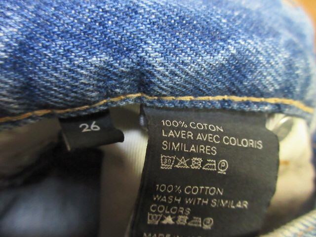 | 商品説明 | 商品状態はユーズド品ですが、目立つダメージは無く綺麗な状態です(神経質な方、新品をお求めの方は入札をお控え下さい)確実に正規品です。 サイズ26 ウエスト:74センチ ワタリ:31センチ 股上:28センチ 股下:77センチ 裾幅:23センチ です(素人採寸ですので誤差はご了承下さい) 素材はコットン100 カラーはウォッシュ加工されたインディゴブルー お探しだった方は是非この機会にいかがでしょうか? |