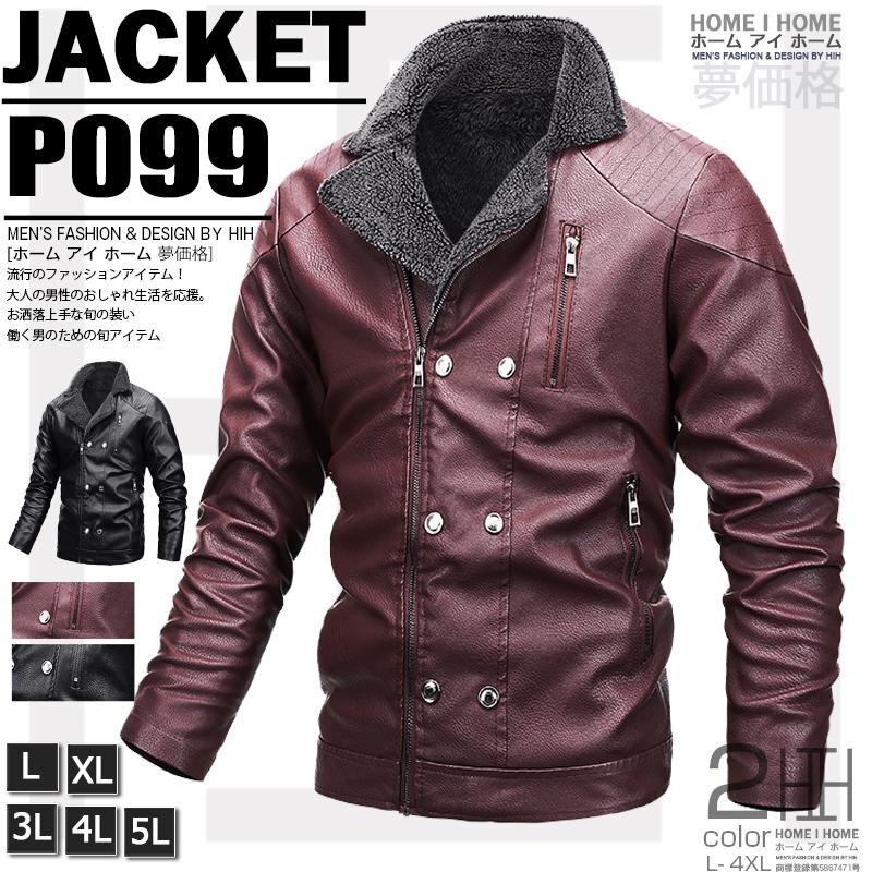 革ジャン PUレザー メンズ ダブルライダー ライダージャケット バイクジャケット ボア付き 裏ボア 50代 コーデ 革 開襟 冬 裏起毛 保温 30代 40代 60代 欧米風 細身