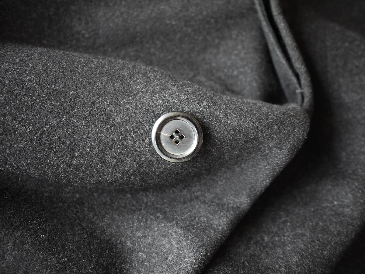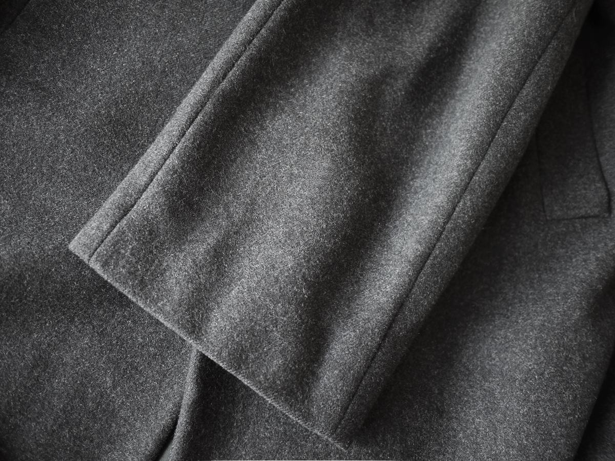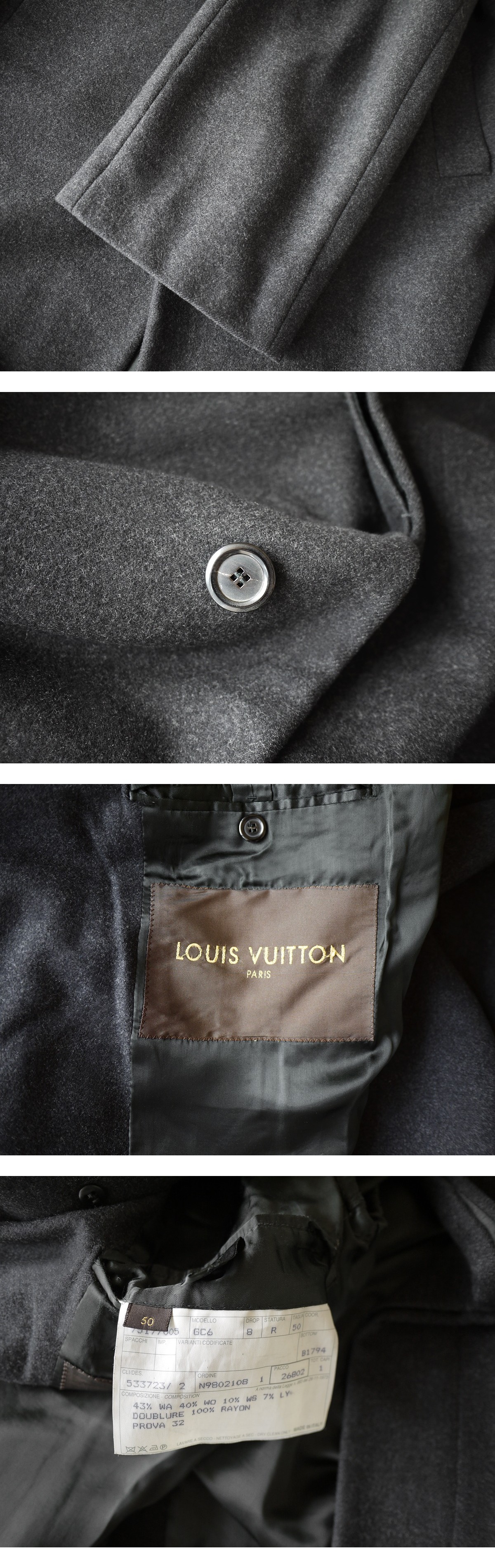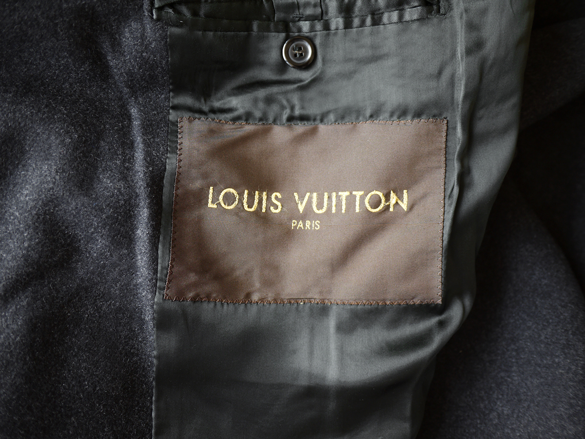 ランウェイ画像はヴィトンの歴代のバルカラーコートで、マイナーチェンジを繰り返しブラッシュアップされてきました。適度に身幅にゆとりを持たせたリラックスしたボックスラインが大変美しく、アンゴラとカシミアを贅沢にブレンドしたメルトンウールを採用し、着心地、保温性ともに兼ねそろえた最上級のファブリックでございます。