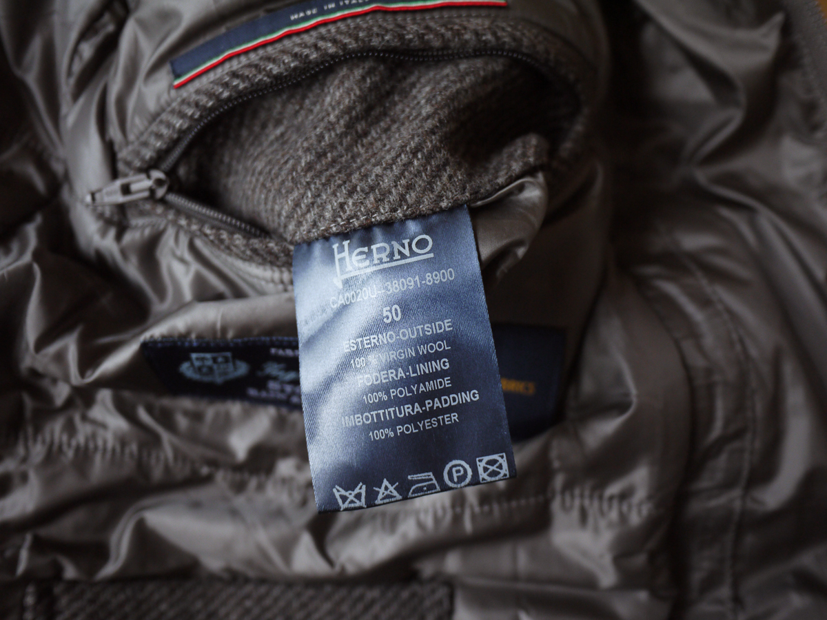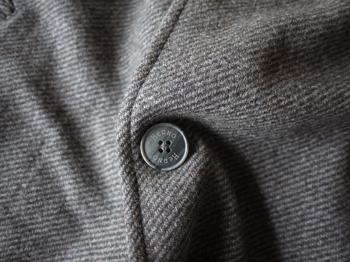 しっかりとした厚みのあるウールメルトンを採用し、ふんわりと柔らかな肌触りが特徴で、着心地への追及と、デザイン性を損なわないヘルノの見事なバランス感覚が感じ取れるファブリックです。カラー部分が取り外し可能な中綿入りのライニングで真冬でも大変暖かい仕様となっております。