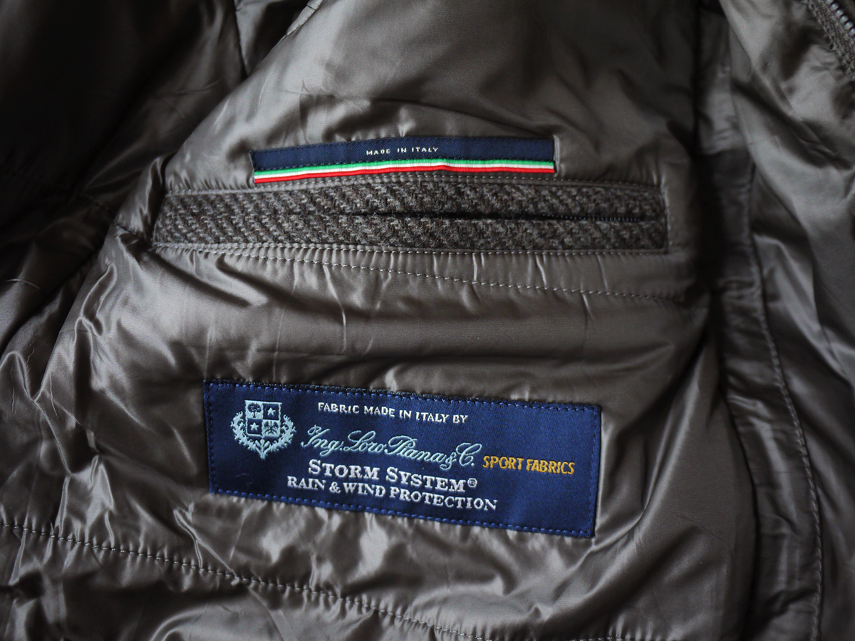 ヘルノらしいモードとラグジュアリーを介在させたエレガントな逸品でございます。