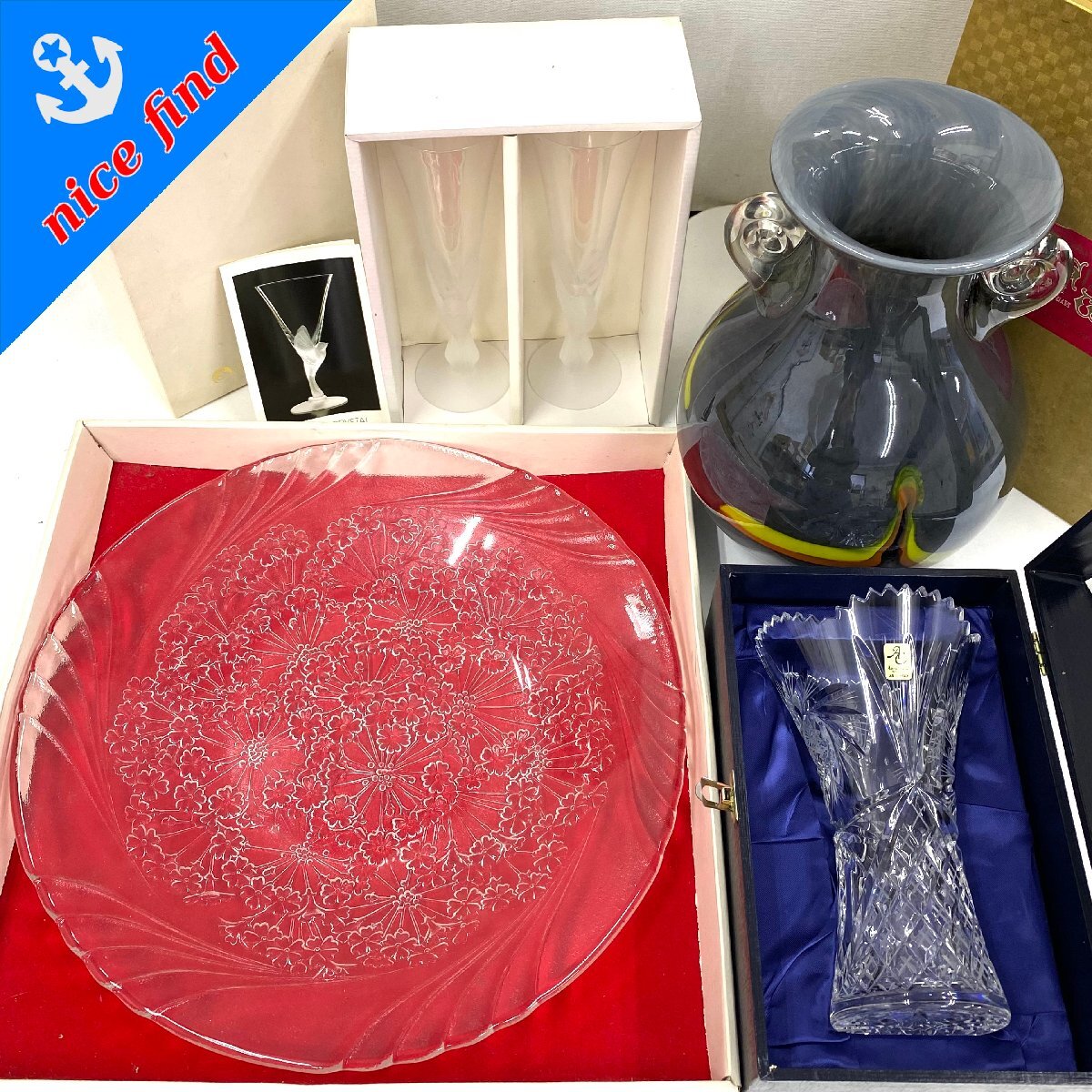 1円~◆食器まとめ売り4点セット◆カメイガラス 石塚硝子 ササキガラス アデリアクリスタル 花瓶 盛皿 大皿 グラス 食器 キッチン ジャンク