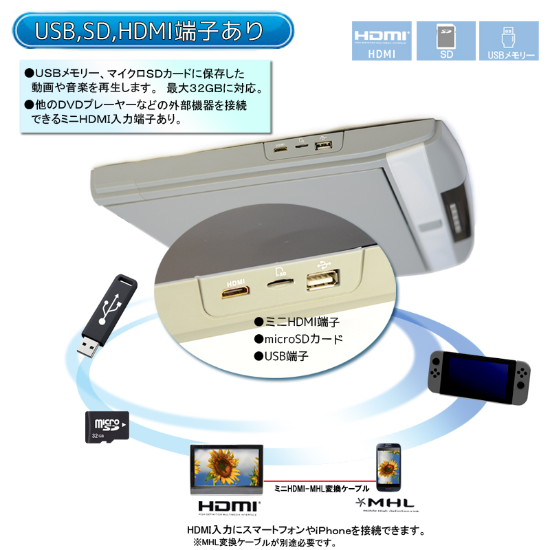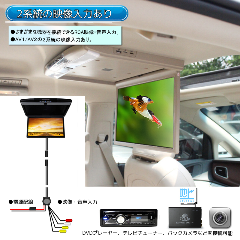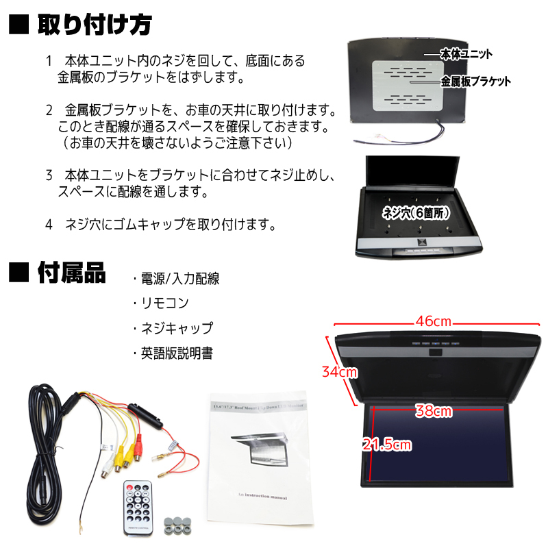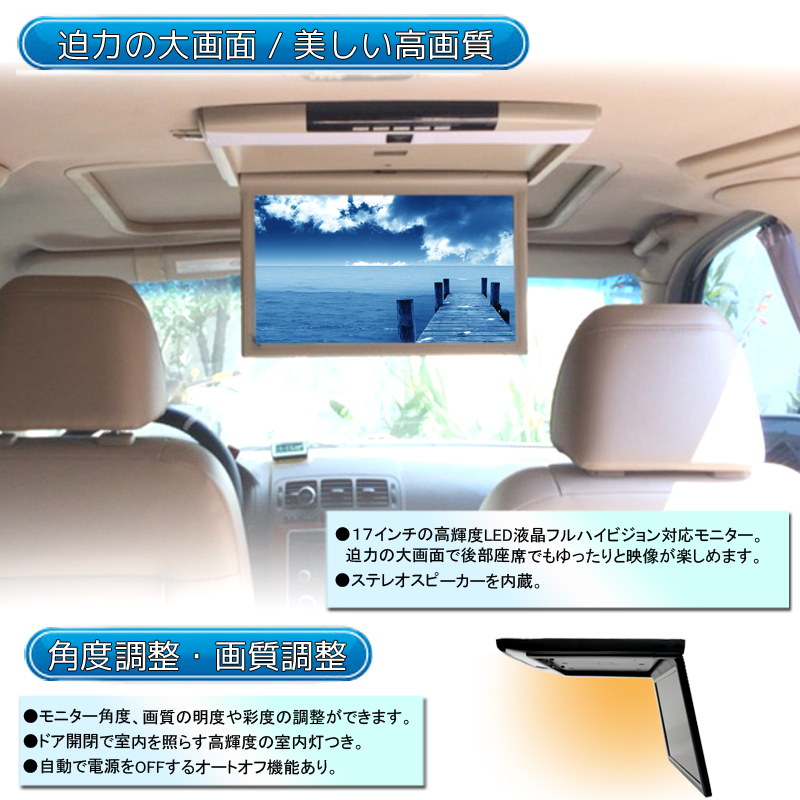 【一年保証】フリップダウンモニター17.3インチ 1920×1080pix 高画質 フルハイビジョン WXGA液晶モニター 3色 スピーカー HDMI USB SD [浏览原始页面]