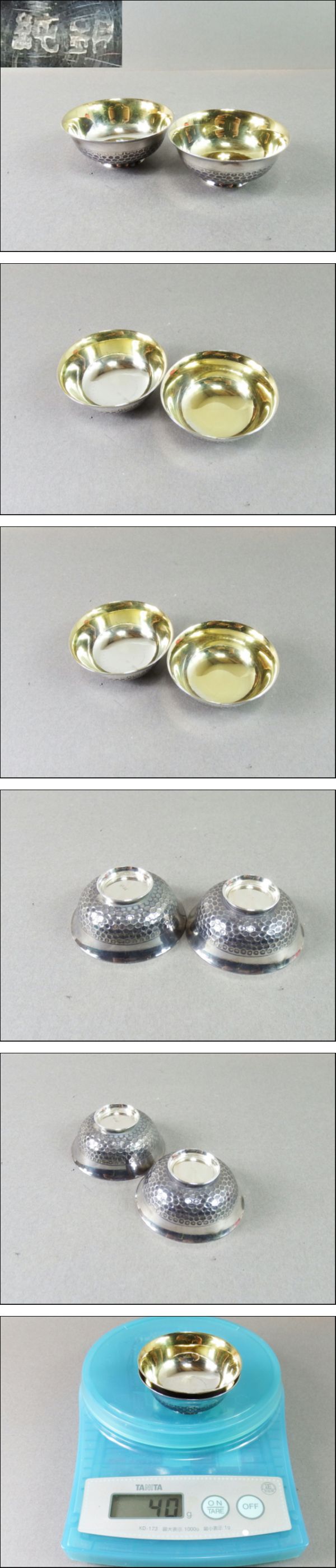 ■■純銀製 お猪口 猪口 盃 40g 一対(2個)刻印 酒器■■ | |||