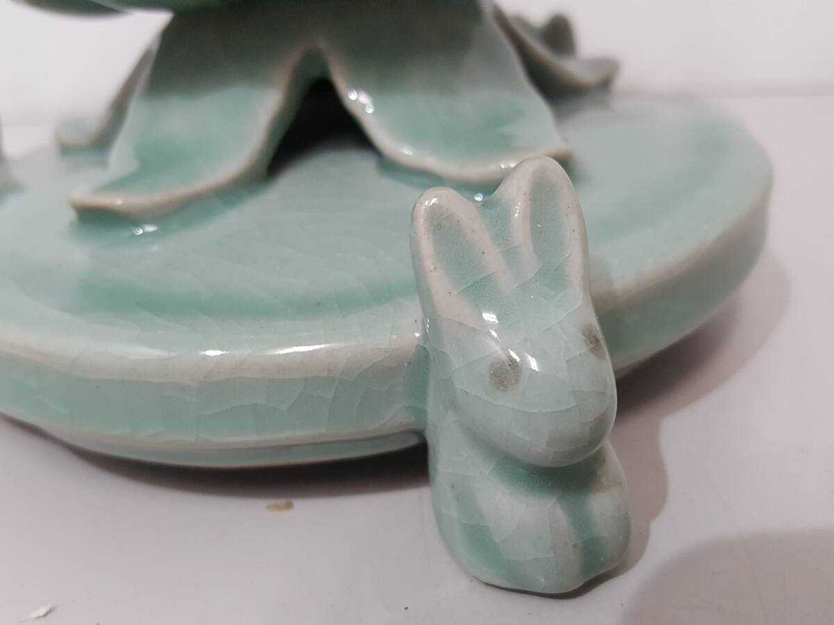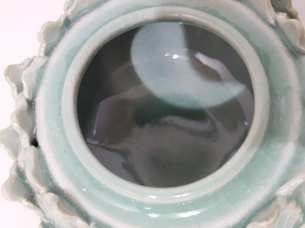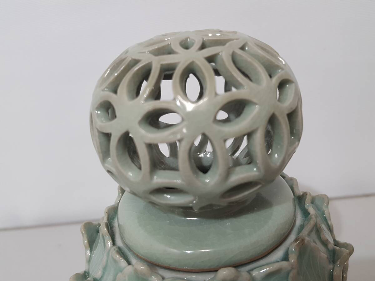 ※佐川急便の場合、離島など別途中継手数料がかかる地域が御座います。 その場合はお振込みを追加でお願いする場合が御座います事、 事前にご了承の程、宜しくお願い致します。 [商品名] 1円スタート 【うぶだし】陶泉 造 高麗青磁 蓮花透かし彫り 兎三つ足 香炉 [サイズ] 高さ約16cm, 横最大約14cm, 口径約4cm 重量約700g [素材] 陶器 [仕様] 箱付き(汚れが御座います) [状態] 若干の汚れが御座いますが、 その他は殆ど傷み無い美品です。