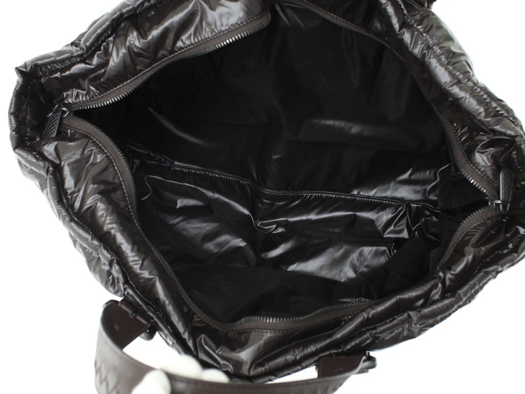 28万新品◆ボッテガヴェネタ◆焦茶ナイロン×イントレディテールレザーハンドルトートバッグ『スピンネーカー』