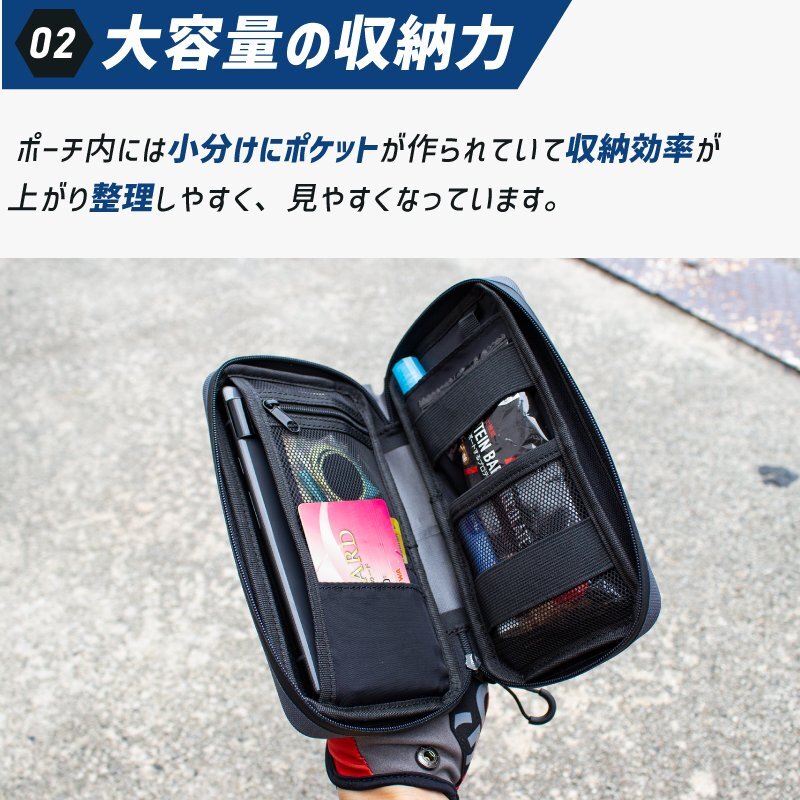 高い防水性能と半端ない収容力のサイクルポーチ 自転車でのライド時に極力荷物を減らしたい&軽くしたい方におすすめのサイクルポーチ。 サイクルジャージの背中ポケットにぴったりと収まるサイズでとてもコンパクトかつおしゃれで機能的なポーチです。 大型の最新スマホ6.8インチまでのサイズに対応。スマホケースとして、そして小銭やカード、補給食、コードなど様々な小物を一つにまとめる事ができる万能ポーチ。 サイクルジャージの背中に入りそして防水性を兼ね備えているのでサイクリングにとても適したサイクルポーチとなっています。 そして外観は年代とわず持てるシンプルでスマートなデザイン。 サイクルシーンだけでなくアウトドアや日常でもお使い頂けます。 サイクルポーチに求められるポイント ・汗で蒸れたり濡れたりしないで汚れに強い ・そこそこの物は入る収納力 ・ジャージの背中に入る携帯性 ・細部へのこだわり [雨や汗から守る] 防水性のあるメイン生地(高防水生地600Dポリエステル)とYKK耐水性ジッパーを組み合わせで 確かな防水性を実現。止水ジッパーはYKK。 表面にはTPUコーティングとそして縫い目のないシームレス溶接構造でさらに防水性を高めています。 雨が強い時はジッパー側を下にして下さい。 (600D(デニール)リュックの底部に使われる事が多い程に分厚く強度がある) (TPUとは弾力性のある素材で、防水性に優れ汚れにも強い) [汚れに強い] TPUコーティング加工は汚れに強く水分が付着しても簡単に拭き取る事ができる。 タフなサイクリングやアウトドアだけでなく日常使いにも最適です。 [大容量の収納力] 大型の最新スマホにも対応した6.8インチまでのスマートフォンも入るサイズ。 スマホ場所には起毛素材を採用していて画面を接触による傷から保護します。 ポーチ内にはポケットが小分けに作られていて整理しやすく、見やすくなっています。 ポーチにはジップ付きの小銭スペースやカード、スマホ、鍵などの専用スペースを設けられて使いやすい。 また工夫次第ではパンク修理やCo2ボンベ、ツールやチューブ、タイヤレバー、ミニ空気入れ、補給食などを様々なアイテムを収納する事ができる。 [携帯性] サイクルジャージのバックポケットに収まるサイズでコンパクト。 サイクルポーチに小物を一つにまとめる事で本当に必要な荷物が最小限に抑えられ軽量化に。 サイクルポーチ本体はとても軽量の105g! [細部にこだわり] 細かい部分にもこだわっています。 1.スマホ収納ポケット外側に起毛素材を採用していて画面を接触による傷から保護します。 2.グローブを装着しても開閉しやすい大きいフック 3.ジッパーのブラブラを防止するジッパーストッパー [様々なシーンで] 自転車通勤、ロードバイクやクロスバイク、mtb、ミニベロなどでのライドのみならず高防水性でタフな事でアウトドアシーンやスキー、スノーボード、旅行、日常使いにも最適です。 シンプルで落ち着いたデザインで老若男女問わずしっくりくる。 商品内容サイクルポーチ(サイクルウォレット) 素材高防水生地600Dポリエステル, 表面TPUコーティング、シームレス溶接構造、YKK耐水性ジッパー 重量超軽量105g 寸法長さ19x高さ10x厚み2.5cm 収納ポケット仕様6.8インチまでのスマートフォン、コインや紙幣、カード、キー 、補給食など様々な小物収納可能 | |