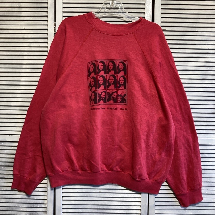 BPUW 1円スタート 赤 ネタ スウェット モナリザ レオナルドダヴィンチ アート ファニー 90s 00s ビンテージ 古着 ベール 卸 仕入れ