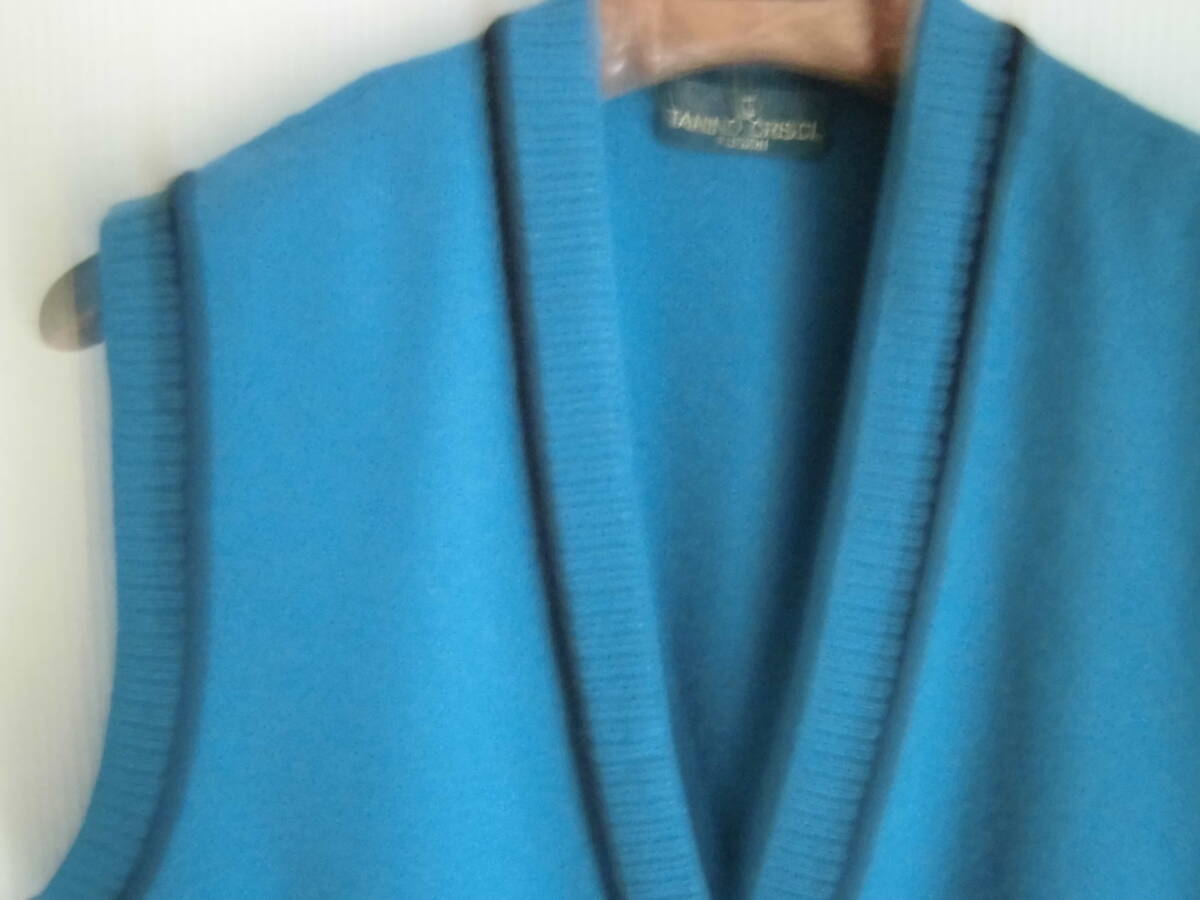 ★着用品の(TANINO CRISCI)の製品です。 ★色はブルー系×ブラック(5枚目画像が近いカラーです)、素材はカシミヤ100%、サイズ表示はありません。 ★状態は右サイド裾の縫い目を1.5センチ位補修しています。表からはわからないと思いますがご了承下さい。 ★実寸は平置きで、(肩幅40)(脇下身幅52)(着丈56)位です。 ★珍しいカラーで、カシミヤの質も上質な製品です。 |