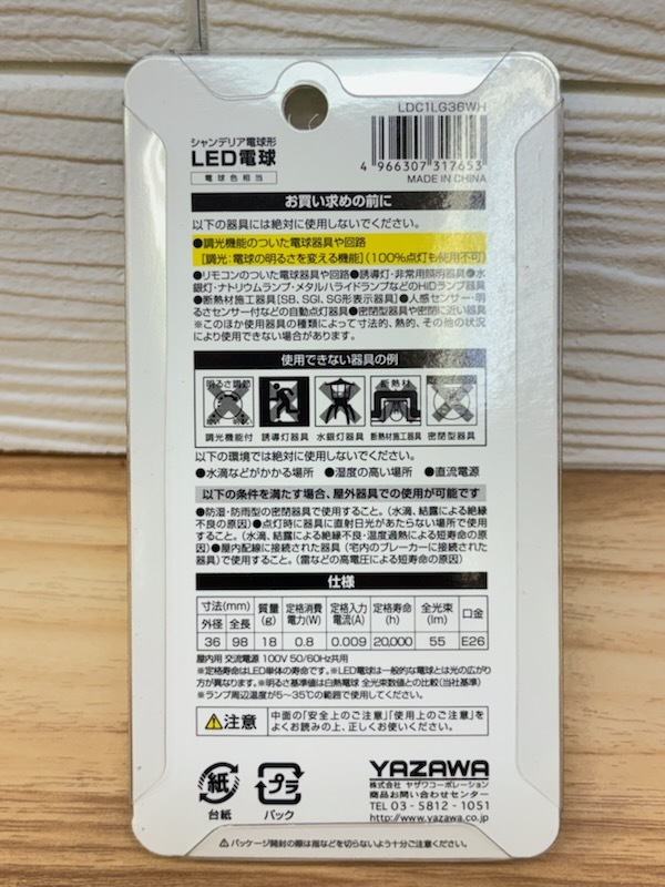 | 商品名 | 低W C36シャンデリア形LED E26 L色 WH |