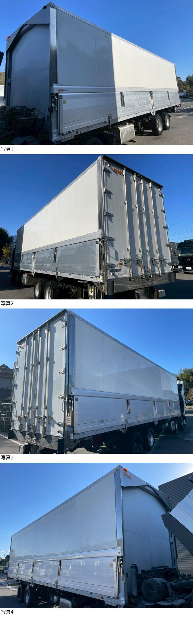 | 大型 ウイング 箱 日野 4軸低床より取り外し トランテックス製 ジョルダー床 内寸:950×240×256㎝ |