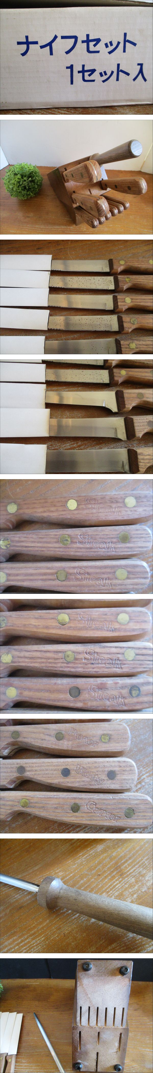 【未使用】木製ナイフスタンド ナイフセット付(ナイフ9本&ナイフ研ぎ棒) JAPAN刻印あり キッチン 調理道具 アウトドア キャンプ※サビあり | |||