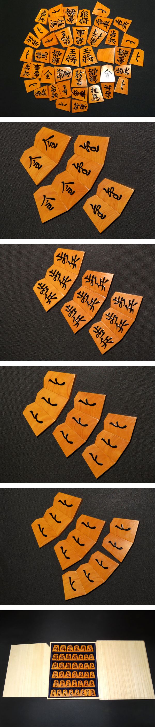 1000円スタート▲一平作錦旗薩摩黄楊木口杢盛上将棋駒▲桐製平箱付