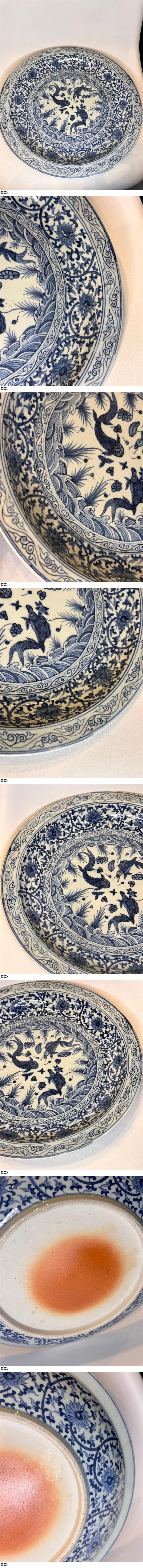 | 大明宣徳年製 底款 大皿 染付 花卉文 魚文 古董品 古い陶磁 皿 |