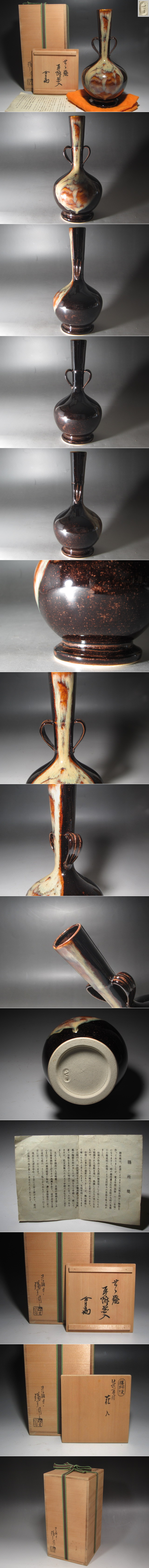 ★ 膳所焼 耳付花入 裏千家 十四代 淡々斎の花押がございます★x587