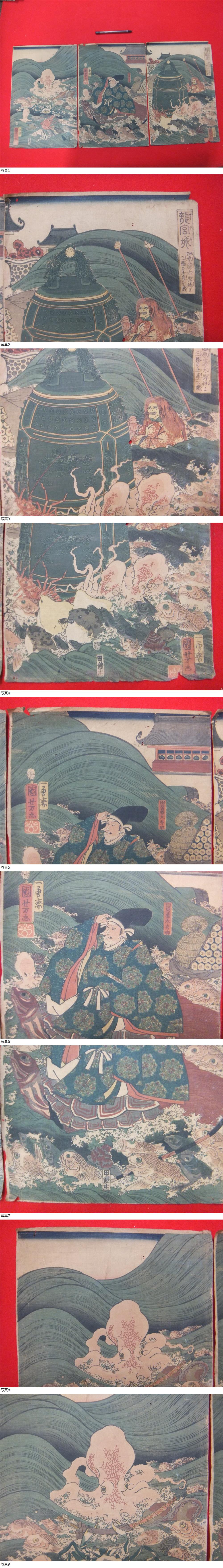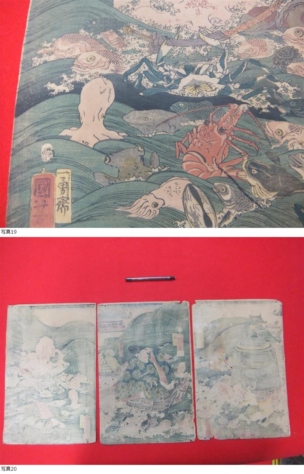 今回出品中の版画は安価カメラの素人撮影ですのでご勘弁を 画像編集など一切しておりませんが 少し反射等で白っぽく写っているかも? 全て1軒の旧家から
