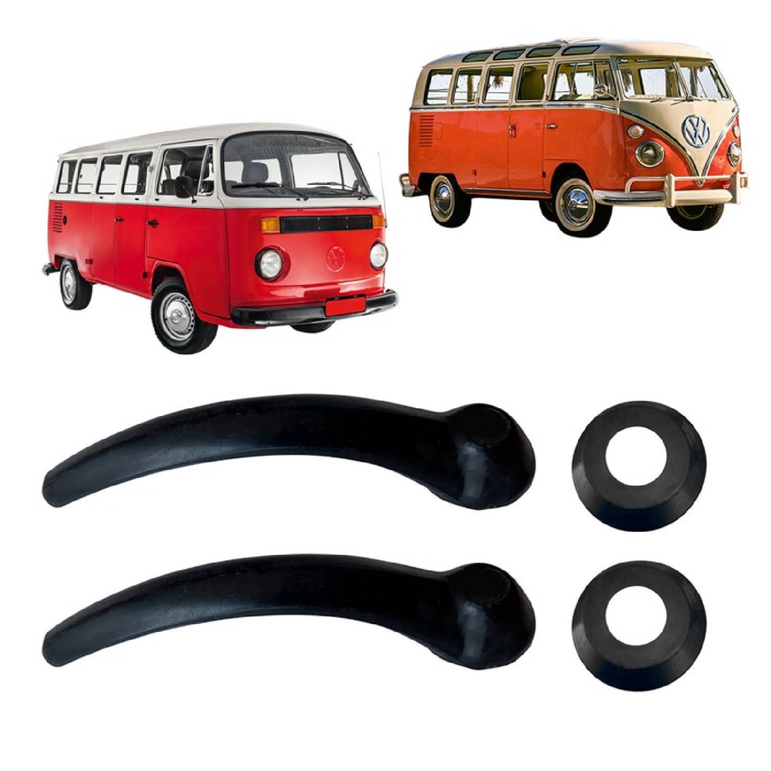 4個セット インナー カーゴ サイド ドア ハンドル ペア ミラー ゴム付き ブラック 黒 PS 内装 VW T2 スプリット バス コンビ