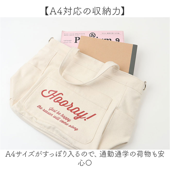 | 商品説明 | ・・【毎日の相棒に】 ・キャンバス地でデイリー使いにぴったりな、2wayキャンバストート。 ・【2wayタイプ】 ・手持ちはもちろん、長さ調節可能なショルダーベルトを取り付けて、肩掛けスタイルも◎ ・【A4対応の収納力】 ・A4サイズがすっぽり入るので、通勤通学の荷物も安心〇 ・【安心の天ファスナー】 ・中身がこぼれ落ちにくいファスナー仕様で、荷物をしっかり守ってくれる。 ・【ロゴがアクセント】 ・フロントにあしらわれたロゴデザインがカジュアルな雰囲気♪ |