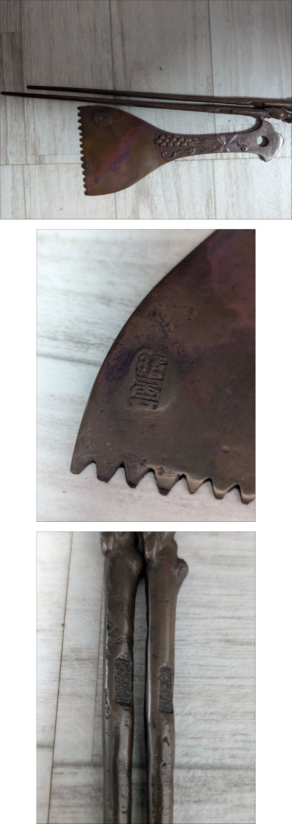 | 商品説明 | 【商品について】 ご覧いただきありがとうございます。 この度出品いたしますのは「 ●風炉 灰ならし 火箸 炭入れ 茶道具 銅製 晴雲● 」でございます。 個人所有物の整理のため、出品する運びとなりました。 中古品ではございますが、ご活用いただける方にお譲りできれば幸いです。 商品の状態、付属品、寸法等につきましては、掲載写真にてご確認をお願いいたします。 補足:当方、ペットの飼育および喫煙の習慣はございません。お気にされる方はご参考ください。