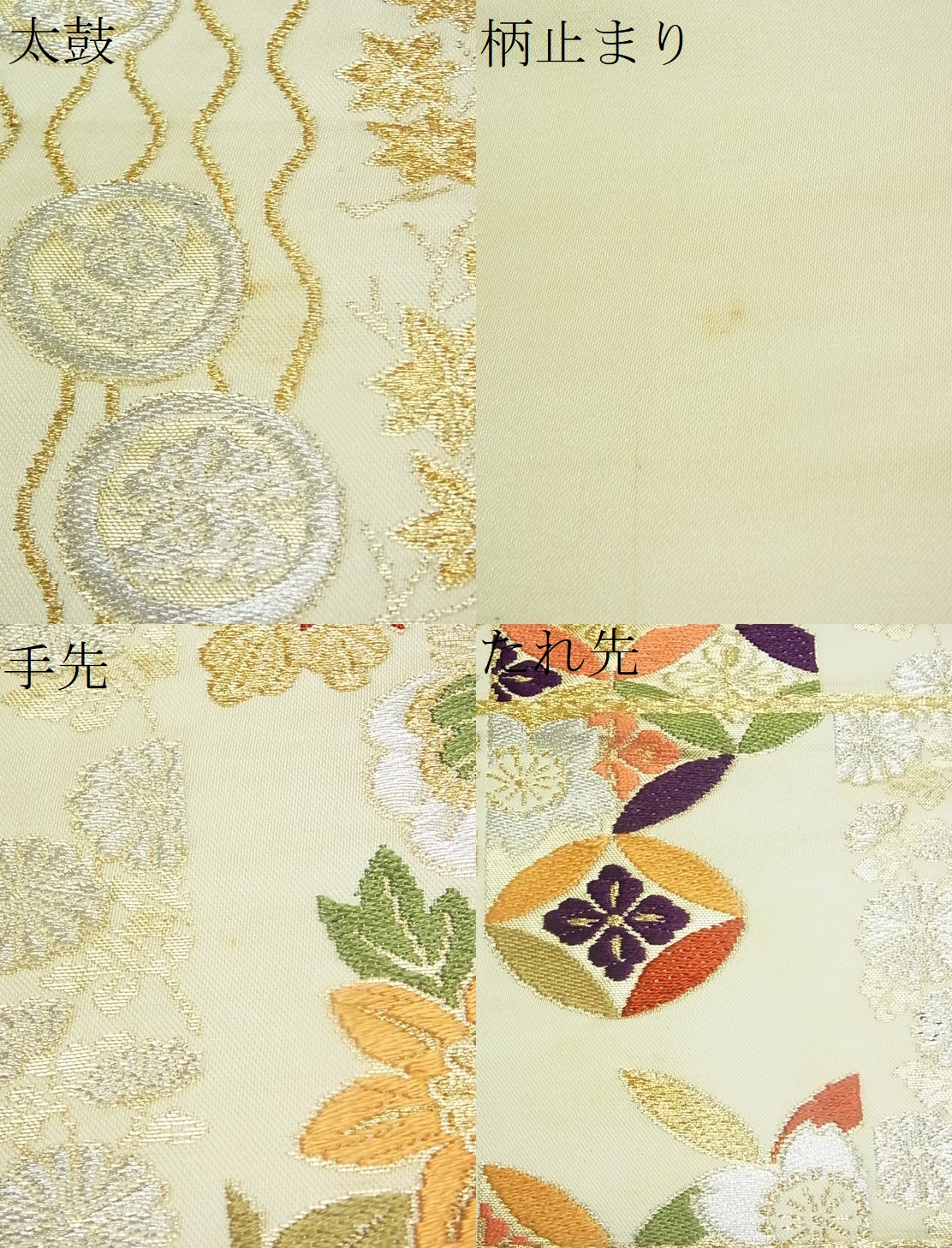 | 【正絹・芯なし】 状態は接写画像のように 太鼓、柄止まり、手先、たれ先に薄い汚れがございますが その他特に目立ったシミ汚れなどもなく大変良い状態です。 大変上質な逸品になります。 お安く出品致しますので、是非この機会にいかがでしょうか?
