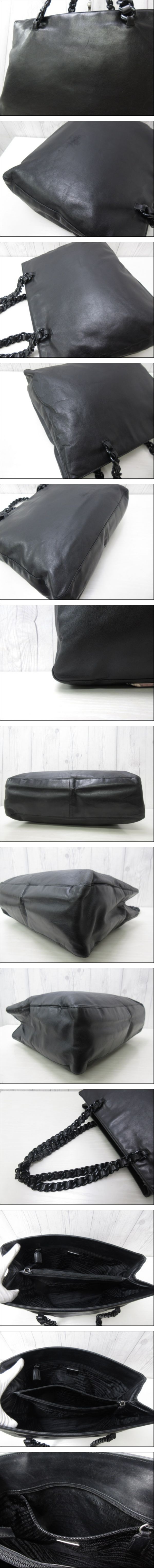 | 美品 PRADA プラダ プラチェーン ショルダーバッグ トートバッグ バッグ レザー 黒 A4収納可 95848Y | ||