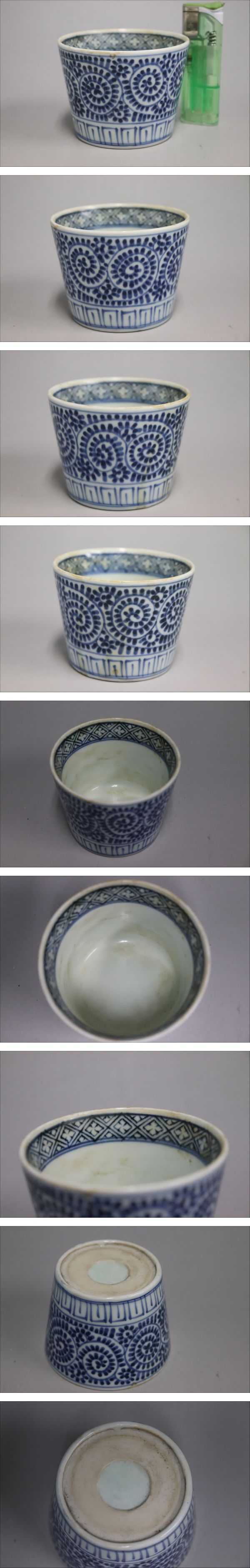 | 商品説明 | 商品名 江戸期 古伊万里染付 蛸唐草文 蕎麦猪口 付属品:なし。 サイズ:高さ6.2cm、口径8.4cm、底径6.3cm。 状態: 時代のスレはございますが無疵になります。 |