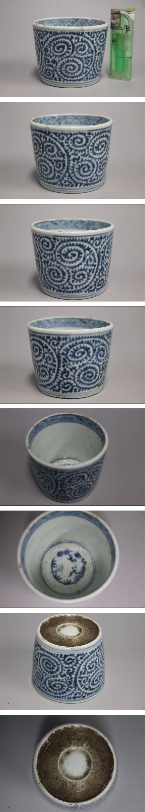 | 商品説明 | 商品名 江戸期 古伊万里染付 蛸唐草文 蕎麦猪口 ① 付属品:なし。 サイズ:高さ6.8cm、口径8.5cm、底径6.7cm。 状態: 時代のスレのみ無疵になります。 |