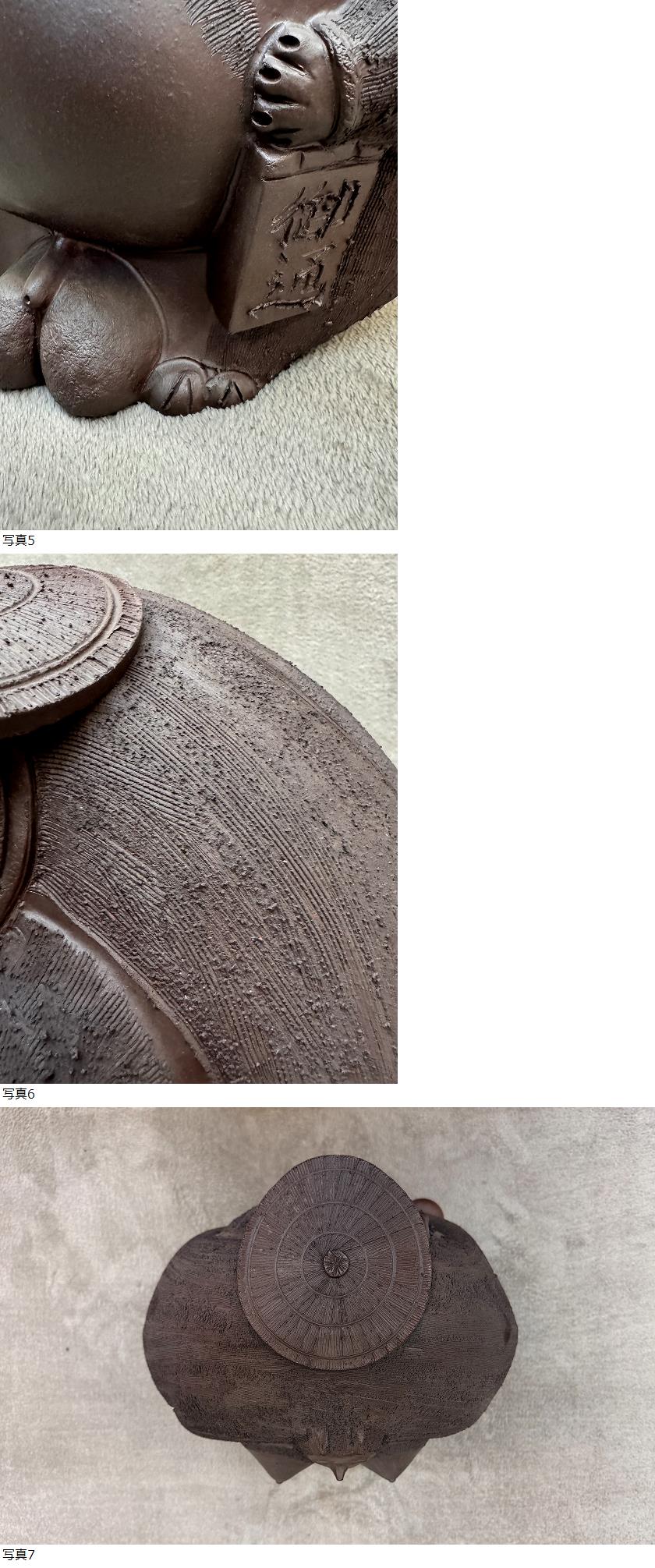☆閲覧・アクセスいただきありがとうございます☆ 【商品】 常滑焼 常滑山光作 両面狸/合わせ狸 旧家よりお譲りいただきました、常滑焼の珍しい両面雌雄たぬきです。 常滑山光作、古い初期の物で、造り込みが違います。 細部までこだわったまさに手作りの真骨頂、静かな物言わぬ迫力にどこか愛らしさを兼ね備えた秀逸なお品です。 【仕様】 ■常滑焼 両面たぬき 雌雄たぬき 合わせたぬき 寸法(約/㎝) 縦:33 幅;35 奥行:30 重量:9.5㎏(約) 【付属】 画像のもの(背景等除く) 【商品状態】 ※当方の見立て、主観となります。 ・中古品です。 経年の旧家保管品です。 ダメージなく経年を経た、良好な状態かと思います。 ************************************************************************************************************************** ![]() | |