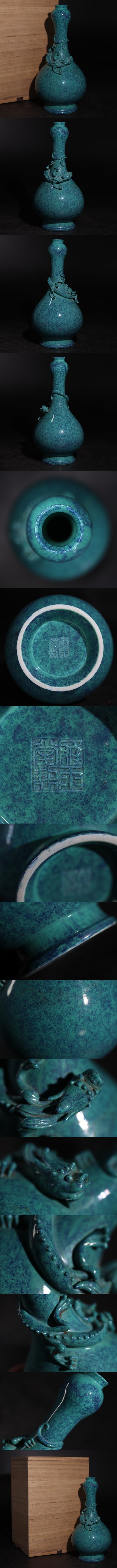 | 雅雨堂製 底款 海鼠釉 龍紋 花瓶 木箱付 / 中国美術 花器 壺 煎茶飾 検索: 鈞釉 鈞窯 .G3902 |