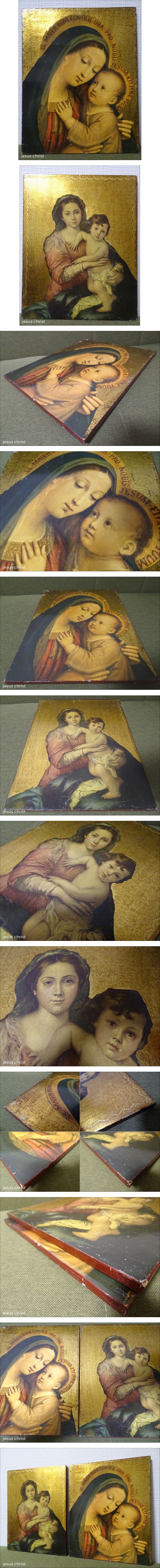 | 聖母子 幼子イエスキリスト jesus christ 聖母マリア画 板絵 2点 イコン 工芸プリント画/キリスト教/宗教美術の出品です。 幼子イエスキリスト・聖母マリア板絵工芸プリント画2点になります。 幼子イエスキリスト聖母マリアをモチーフにゴールドの背景が印象的なアイテムです。詳細は不明になります。コレクションにいかがでしょう。