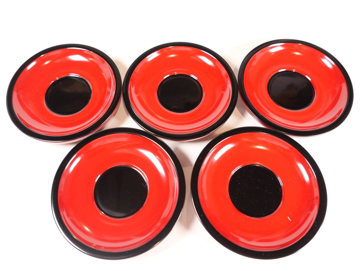 | 未使用★木曽漆器 本うるし塗 木製 漆器 茶托 5客 径12cm | ||