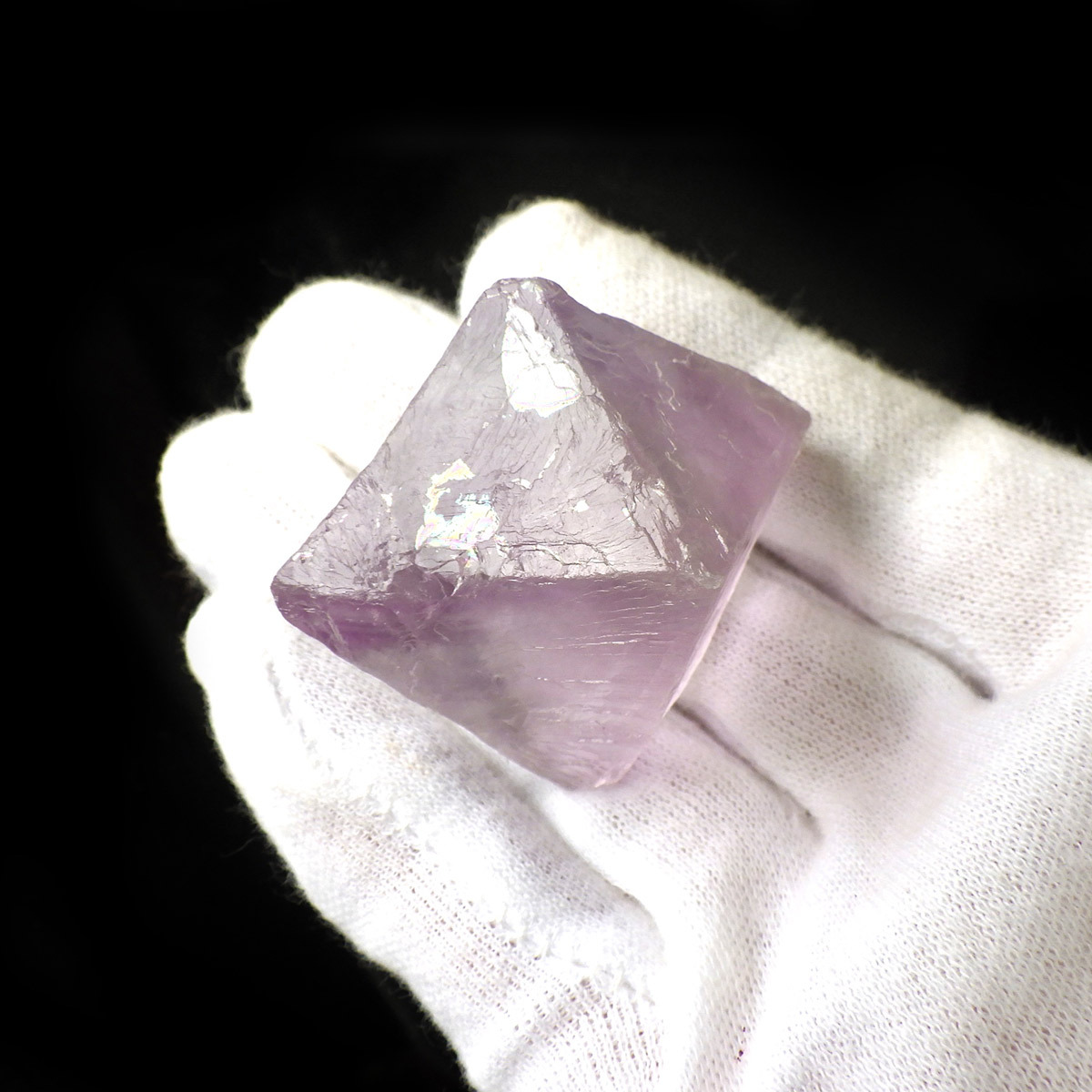 チャイナ産の八面体フローライトです。この正八面体の形は、蛍石が平面に平行に割れやすい性質を利用して加工したものです。光に透かすと一層の美しさです。| 出价者 | 信用 | 价格 | 时间 |
