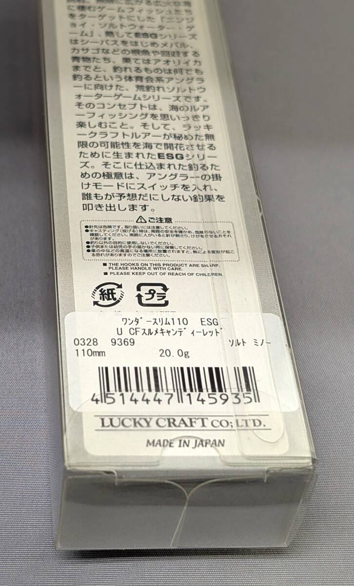 ラッキークラフトのワンダースリム 110です。カラー U CF スルメキャンディーレッド 新品未使用です。パッケージに傷み等ある場合があります。 ノークレームノーリターンでお願いします。 発送はクリックポスト(補償なし)です。 手渡し不可です。 当方連絡は、取引ナビにておこないますのでよろしくお願いします。 |