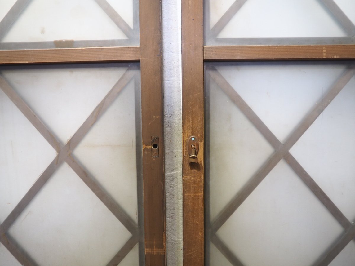 商品情報 | ■商品詳細■ ヴィンテージの古い木枠ガラス戸、2枚セットです。 長年使い込まれた味わいのある品です。 ガラスは、曇りガラスを使用しています。 一般のご家庭はもちろん、レトロな店舗什器にもお勧めです。 経年の傷や欠け、染みや木枠に欠け、隙間や塗装の剥がれ、 ガラスに落としきれない汚れ等がありますが、使用には問題ありません。 ガラスにヒビや割れはありません。 古い塗装のため、配送中に多少剥がれることがありますので、予めご了承下さい。 古い物とご理解いただければ幸いです。 ご不明な点などありましたら、質問欄にてお願いします。 ■サイズ■ 全体(最大値) (H 138cm×W 87cm×D 2,5cm)×2枚 竪框 3,3cm 鴨居に入る部分 1,3cm 多少の誤差はご了承下さい。 ドライバー1人での配達になりますので、場合(通路が狭い等)によっては 荷運びのお手伝いをお願いすることがあります。 商品は玄関先までの配達になります。 |