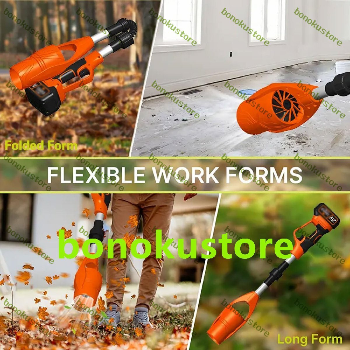 折りたたみ式ハンドヘルドリーフブロワー、400W コードレスブラシレス除塵ヘアドライヤー、3000mAh バッテリー付き、最大風速 63m/s、庭、庭、車、屋根用のポータブルブロワー