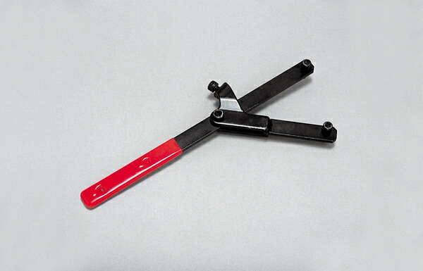 内容 | フライホイール、フロントスプロケット等を脱着する際の空回り防止用特殊工具。 ゆるみ防止のロックナット付。ピン45~145mm。ピン径はφ5.5とφ11の2種。ほとんどの車種に適合。 ●マジェスティ、フォーサイト、フォルツァのドライブフェイスやZOOMERプーリー、クラッチにも使用可能。 ※スカイウェイブ250/400のプーリー脱着には使用できません。 商品の詳細な情報については、メーカーサイト(www.daytona.co.jp/)でご確認ください。 | |