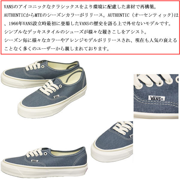 | 商品名 | VANS (ヴァンズ バンズ) VN000CW2RV2 Mte Authentic オーセンティック Reissue 44 スニーカー Salt Wash Stormy Weather VN599 US7.5-約25.5cm |