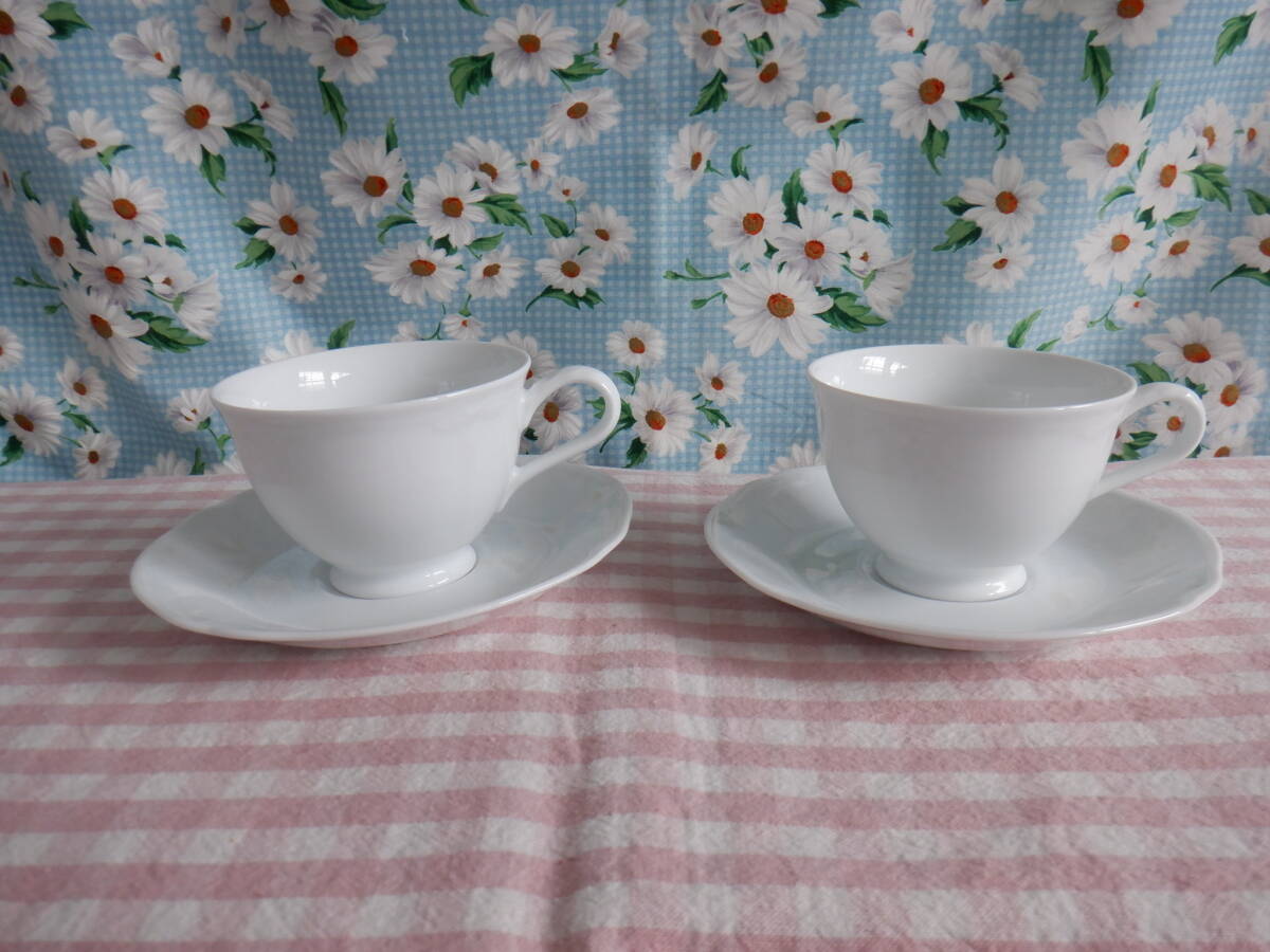 NORITAKE『ノリタケ(COTY WHITE)★真っ白なシンプルなペアカップ&ソーサー 日本製』~箱付き 愛知トヨタ CROWN(クラウン)になります。カップのサイズですが、口径9cm、高さ6.5cm、ソーサーのサイズですが直径15cm、高さ2cmあります。採寸の方ですが、多少の誤差はお許し下さい。実家の片付けで出てきましたので、自宅にて長期保管品につき現状渡しとなります。ノークレームノーリターンでお願いいたします。神経質な方は、入札をご遠慮下さい。新規の方・悪い評価が多い方の入札は、こちらの判断で取り消すことがあります。