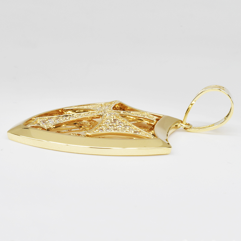 | 商品説明 | シードル(盾)モチーフのおおぶりなメンズペンダントトップで存在感もかなりあります。 クロスモチーフにダイヤモンドを敷き詰めていますので、胸元を華やかにワイルドにしてくれるラグジュアリーペンダントトップです♪ |