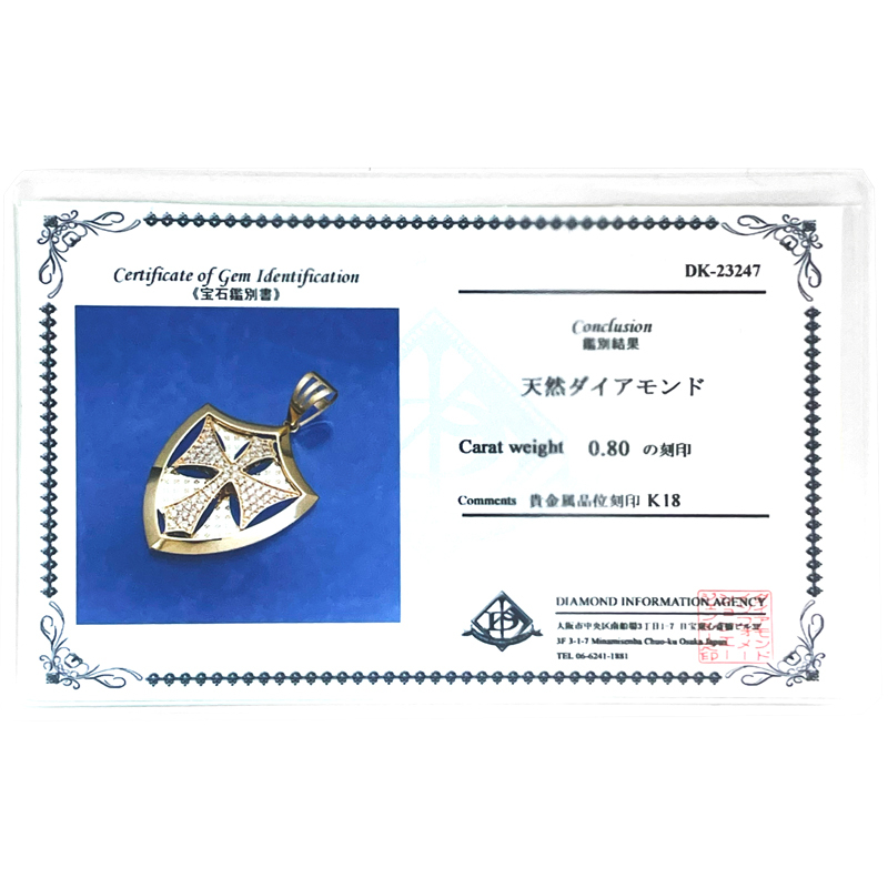 | 商品名 | K18 ダイヤモンド ペンダントトップ ダイヤシールドクロス |