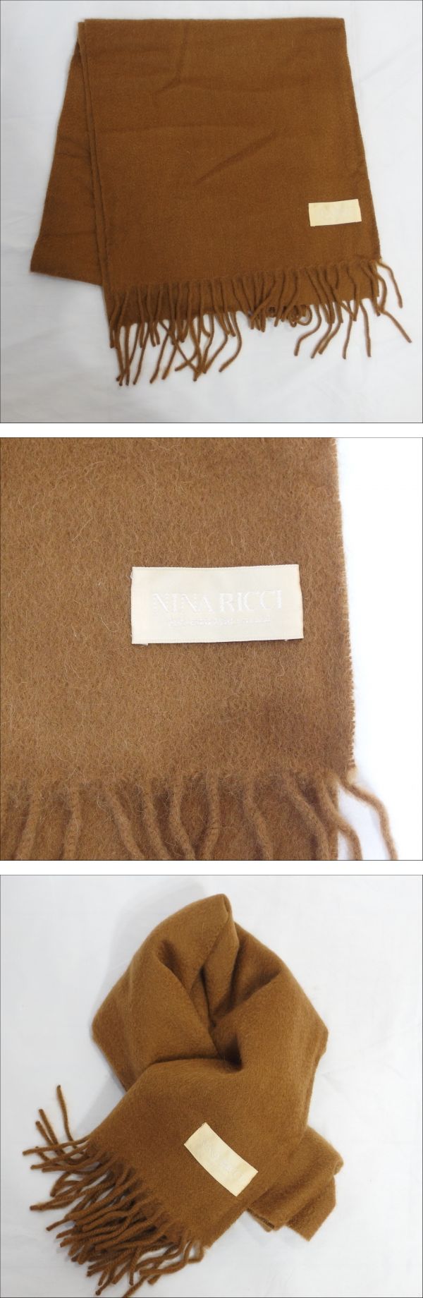 NINA RICCI◆ニナリッチ マフラー ウール製 無地 マフラー(ブラウン)全長152㎝◆USED F | |||