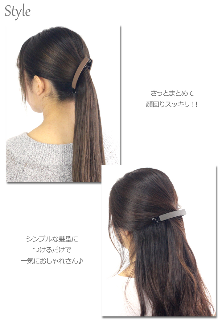 | 商品説明 | シンプルな細身バナナクリップ。 素材もカラーも大人コーデにぴったり☆ サイズもほどよい大きさでミディアムヘアの方にもお使いいただけます。 朝の忙しい時間も、クルッとねじればOK!!のバナナクリップで、簡単ヘアアレンジの出来上がり☆ 普段のオシャレにピッタリのアイテムです。 |