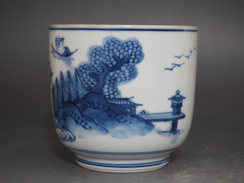 | A4226 手塚景雲 作 染付山水図 火入 ☆ 茶道具 茶器 茶懐石 茶事 灰道具 香道具 喫煙具 香炉 香爐 磁器 作家物 在銘 陶印 美品 良品 無傷 | ||